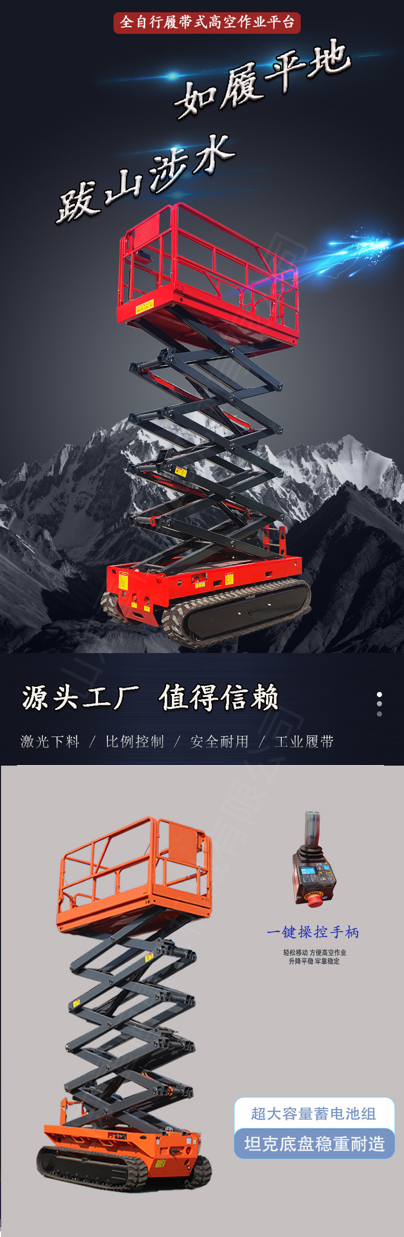 坦克底盤式高空作業(yè)平臺(tái)車 安全穩(wěn)定一鍵調(diào)平
